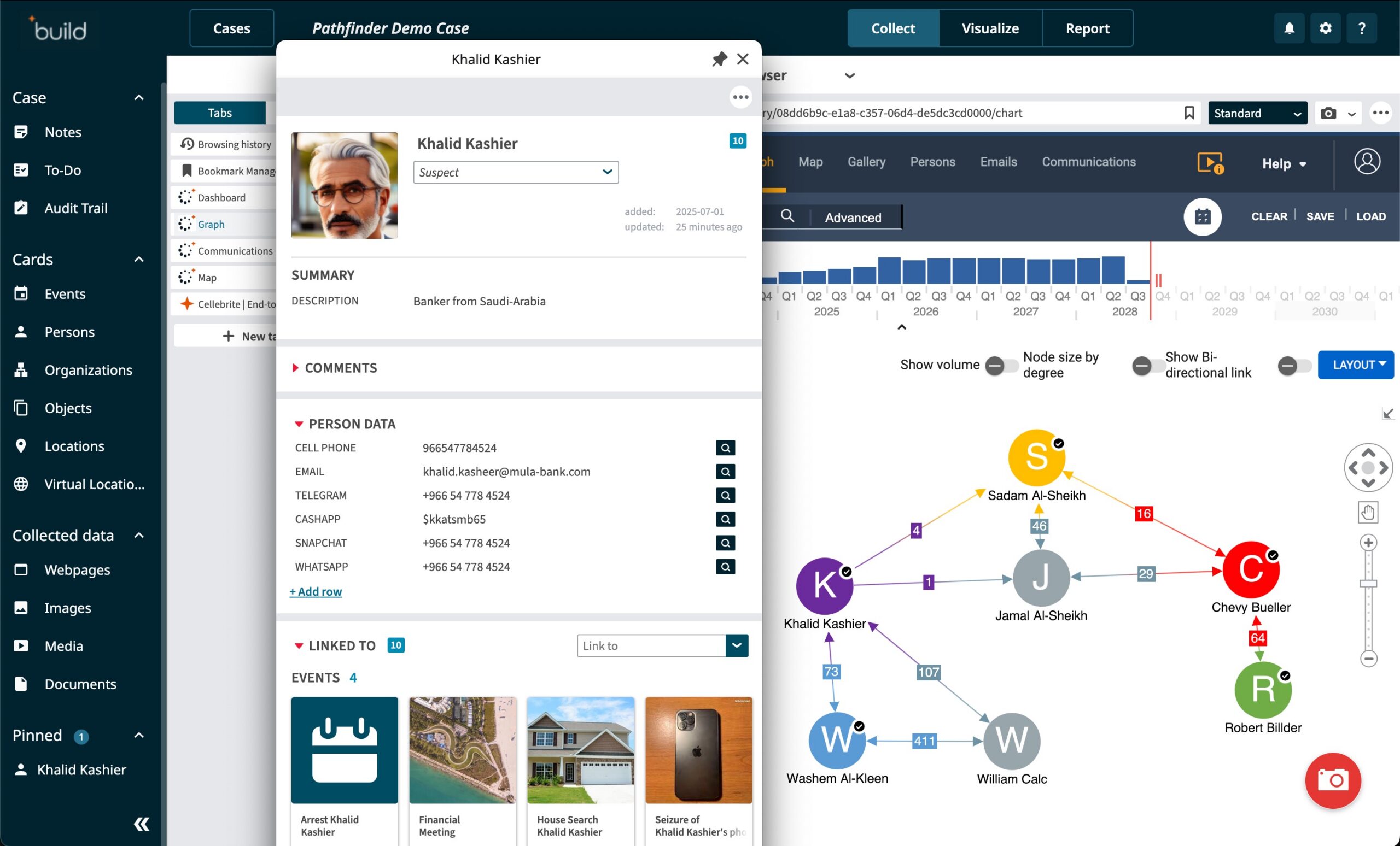 Aggregate intelligence, insights, manage cases, collaborate on narratives, and export comprehensive reports — all powered by Pathfinder.
