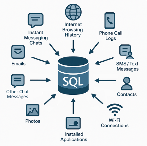 Leverage the power of structured queries in SQLite to surgically filter, examine and report on large volumes of data. Create a single container to house all of the pertinent evidence (e.g., mobile device data stores) for preservation and disclosure.
