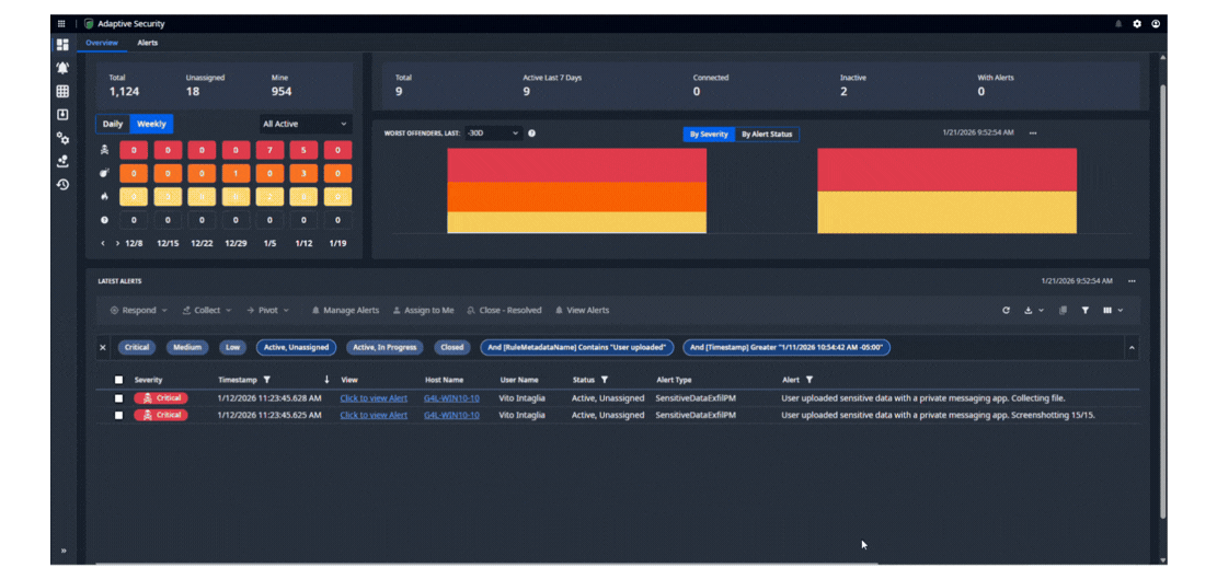 Adaptive Security empowers organizations to take control of digital risk with confidence. Built for security teams who demand visibility, speed, and precision, Adaptive Security employs a patented programable logic engine to monitor both machine and human behaviors in real time, enabling swift detection of insider risk, cyber threats, and critical compliance issues.